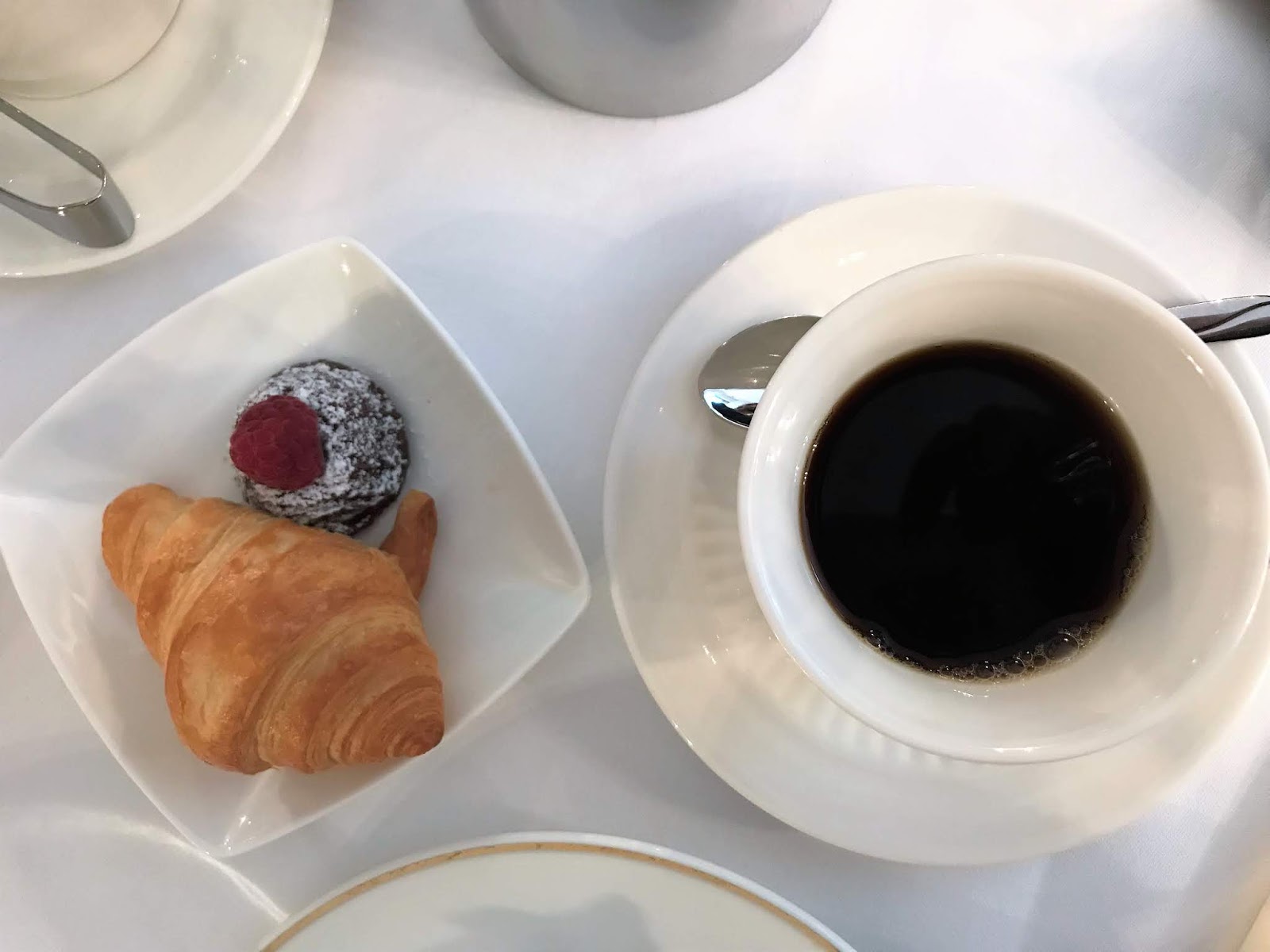 Jag blev ju så förtjust i ett av våra rum, där det fanns ett alldeles förtjusande litet frukostbord vid en fransk balkong. Nästan så jag ville beställa upp frukost på rummet. Men det gjorde vi inte. Och det var vi glada för.