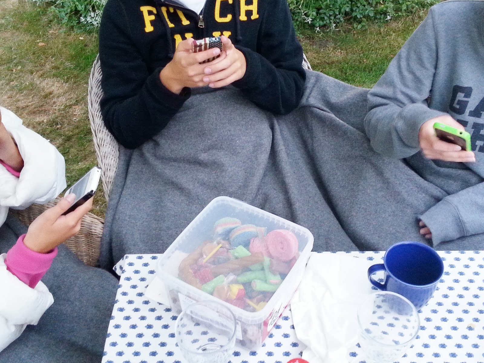 När vi hunnit bada två gånger och ätit en massa gott och skymningen börja närma sig blev Loppan sugen på bad igen. Men då packade maken och jag in oss i bilen igen och åkte hem. Och lämnade barnen kvar.