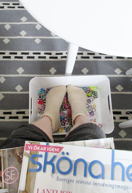 Och jag fick börja med ett fotbad. I famnen fick jag en hög tidningar.